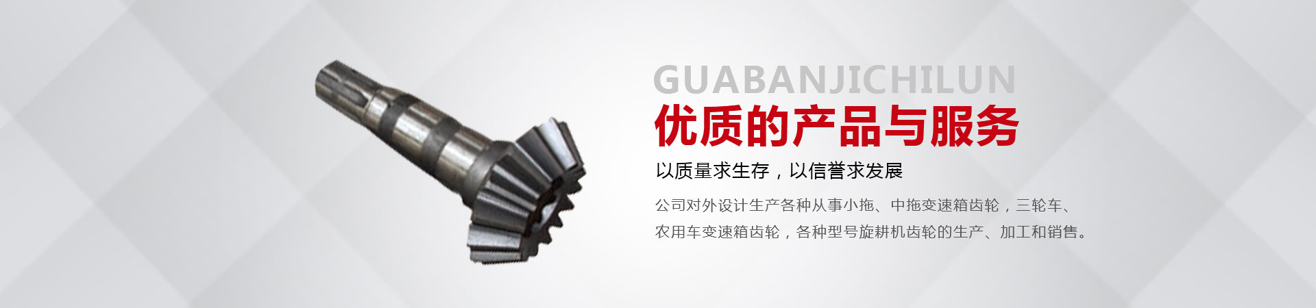 本廠位于省會東南60公里的全國重點鎮(zhèn)——大陸村鎮(zhèn)。本廠在市場內(nèi)設有銷售公司,經(jīng)銷工程機械;農(nóng)用拖拉機;農(nóng)機具的整機和全車配件。市場緊靠308國道,距青銀高速寧晉路口14公里,交通十分方便。主要從事小拖、中拖變速箱齒輪,三輪車、農(nóng)用車變速箱齒輪,各種型號旋耕機齒輪、收獲機械變速箱齒輪的生產(chǎn)、加工和銷售。同時加工定做各種直齒輪,傘齒輪,斜齒輪,鏈輪,齒輪軸等機械產(chǎn)品。廠內(nèi)檢測手段齊全。十幾年來與河北、北京、山東、安徽、河南、吉林、陜西、山西、寧夏、黑龍江、遼寧等省市的企業(yè)建立了穩(wěn)固的業(yè)務關系。產(chǎn)品質(zhì)量穩(wěn)定、價格合理、供貨及時。